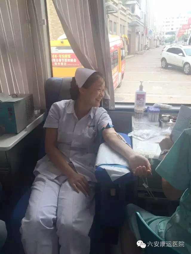 在献血的医务人员中,有很多人多次参加义务献血,药房杨会菊主任就是其中一位,杨主任基本是每年献血一次,中心血站的采血人员一眼就认出了这位老面孔,并热情的喊了声杨大姐。杨主任认为无偿献血不仅是一种奉献,更是一种社会责任和义务,她认为献血是一种使命。六安康运医院大家庭的成员用行动诠释了大爱无疆,无私奉献的精神,彰显六安康运医院人热心公益和医者仁心的高尚情怀。