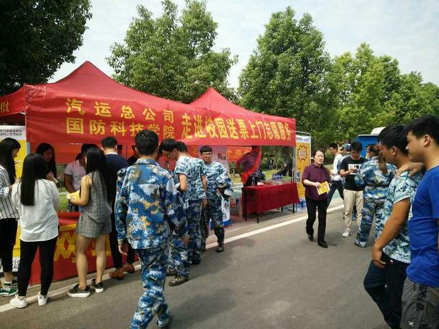 活动现场,志愿者们搭建简易工作台,身披绶带,积极热情的为同学们提供班次咨询、问题解答、车票预订等服务,同时宣讲安全乘车常识,倡导绿色、文明出行。不仅如此,客运总站“映山红”亲情服务班还为12名国防科技学院的特困学生免费提供了“爱心车票”。