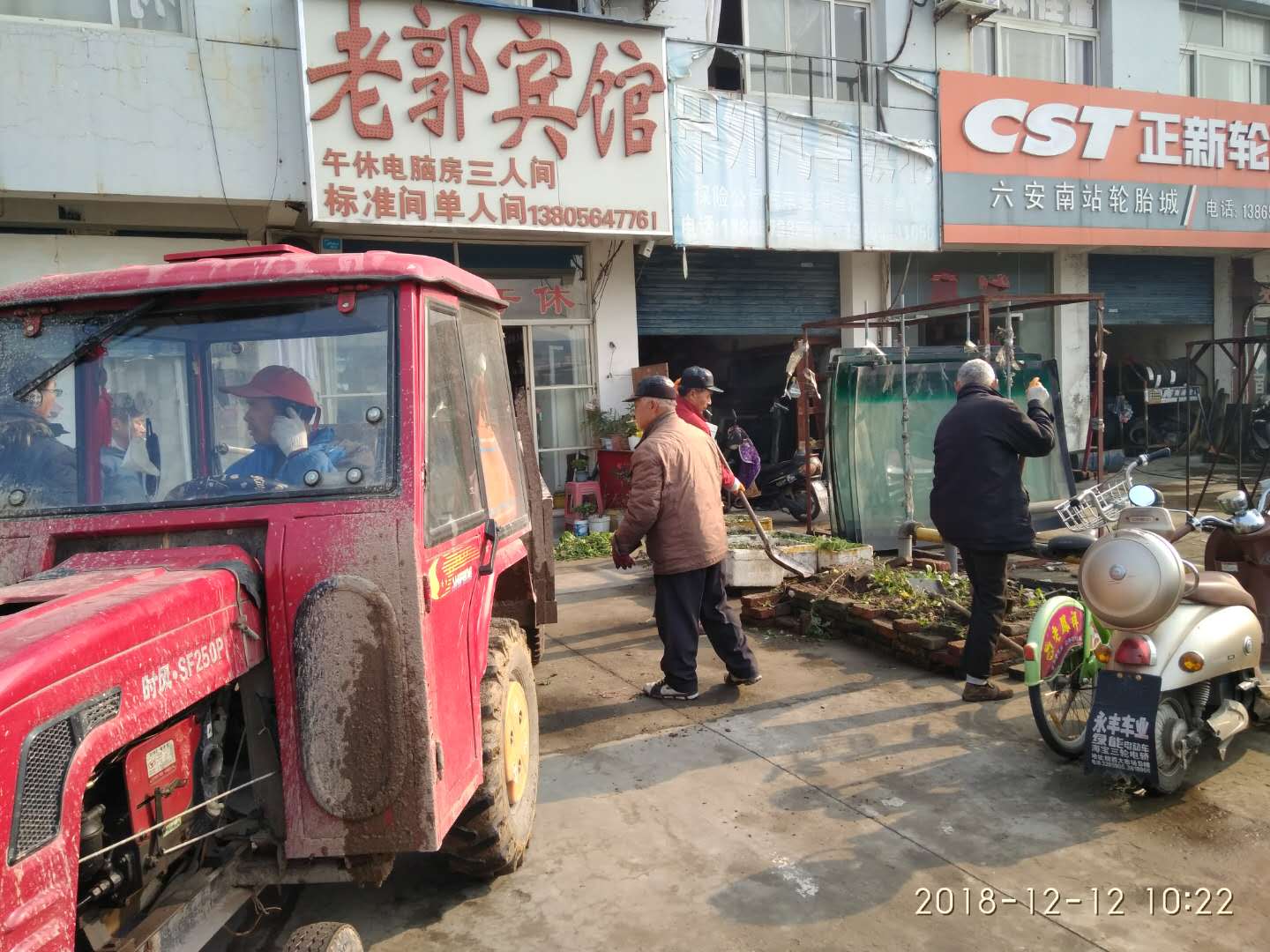 12月12日,小华山街道、裕安区城市执法局、总公司经贸处,联合对南站商贸市场进行环境卫生整治。上午八点,城管执法车上广播,现场不间断向广大商户、市民们,宣传六安市创建全国文明城市倡议书,出动清障车、小四轮运输车,三家单位20多位人员,针对市场内乱堆乱放、占道经营、私搭乱建、卫生死角、常年废弃物等脏乱差现象,进行市场规范,垃圾彻底清运出市场。此次整治,清除废弃大客车挡风玻璃7块,围砌砖垒小菜地7块,泡沫塑盒等盆栽蔬菜50多盆,僵尸车2辆,各类垃圾20多车,市场面貌焕然一新。