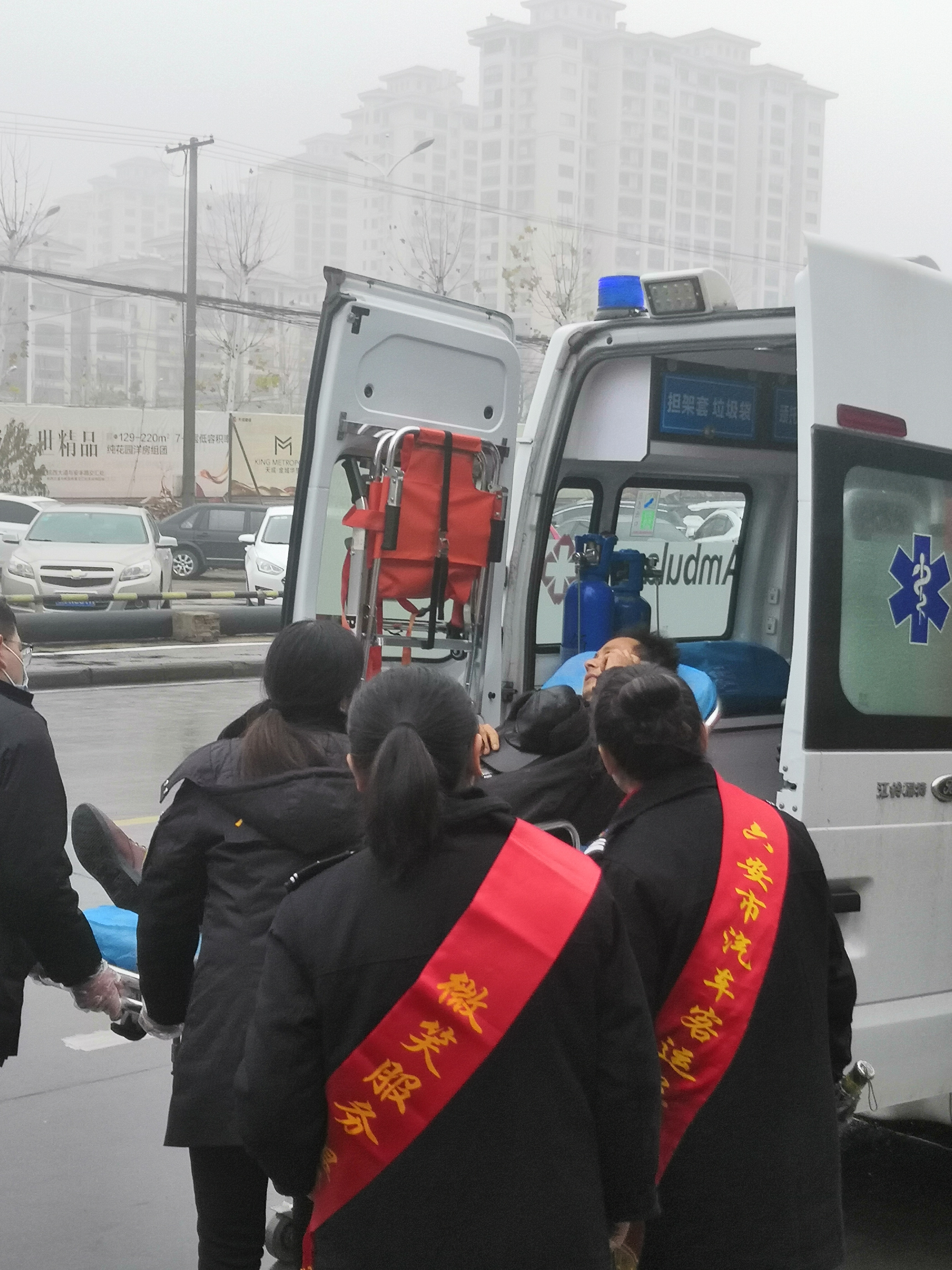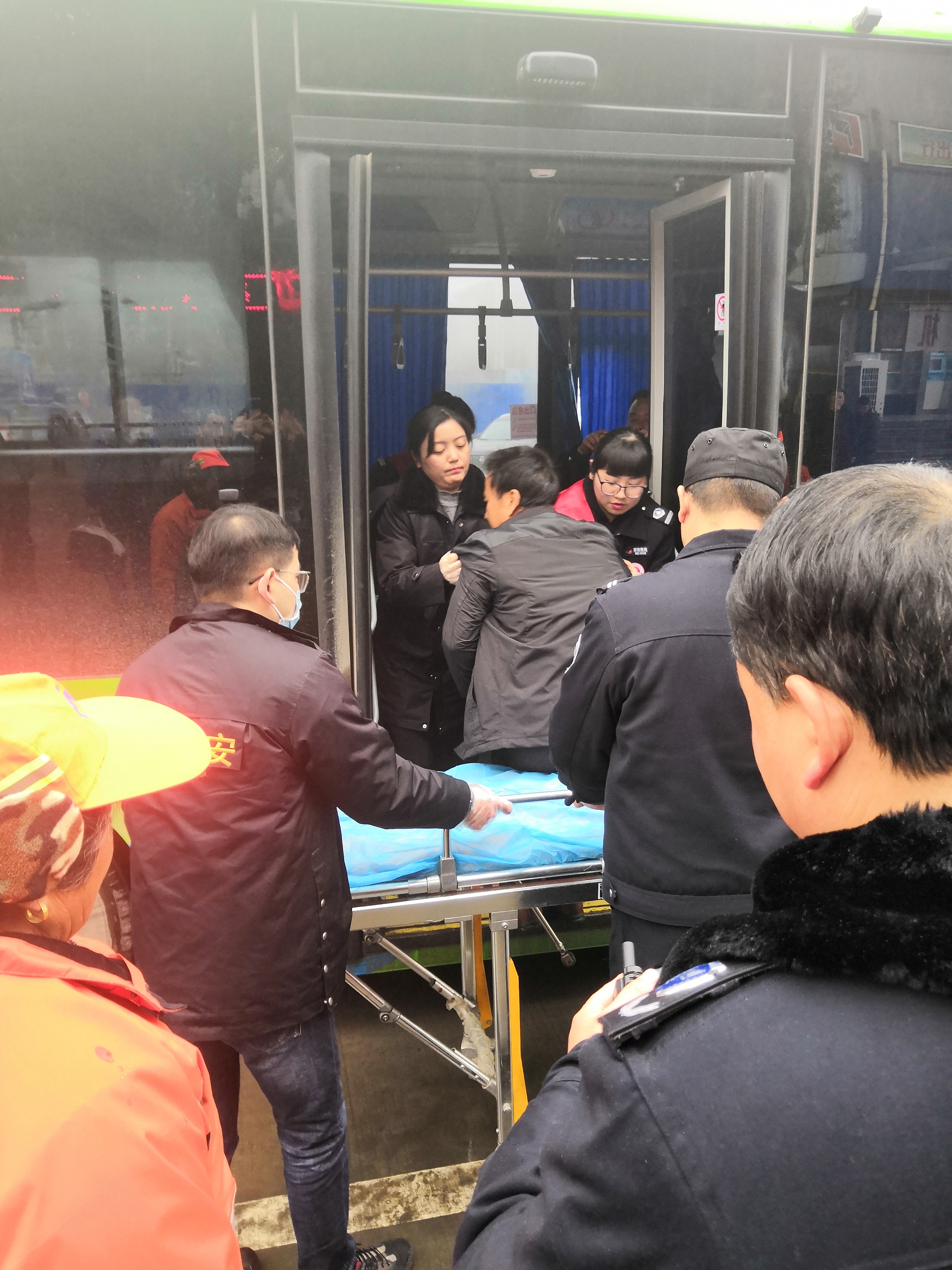 幸好救护车及时赶到,志愿者立即帮助医生把男子抬到车上,并将男子的行李一并带上,男子在医护人员的紧急救助下状况略有好转。