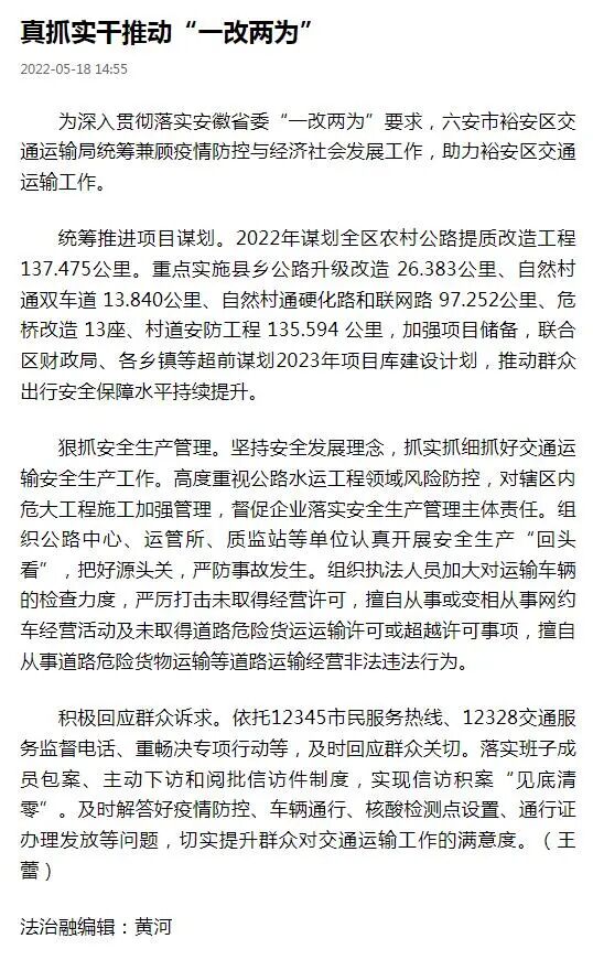【转】省级媒体看六安交通|真抓实干推动“一改两为”