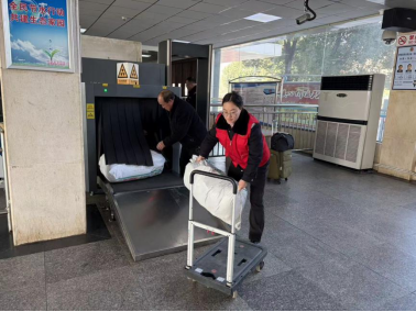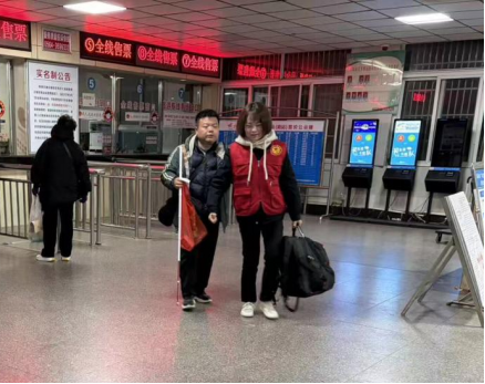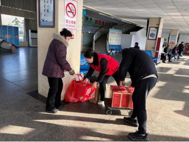 春运返程期间,旅客拖着行囊匆匆赶路,多有不便。映山红服务班工作人员传承雷锋助人为乐的初心,主动上前帮扶,从进站口到检票口全程护送,用朴实行动为旅客减轻旅途负担,把温暖送到旅客心坎上。